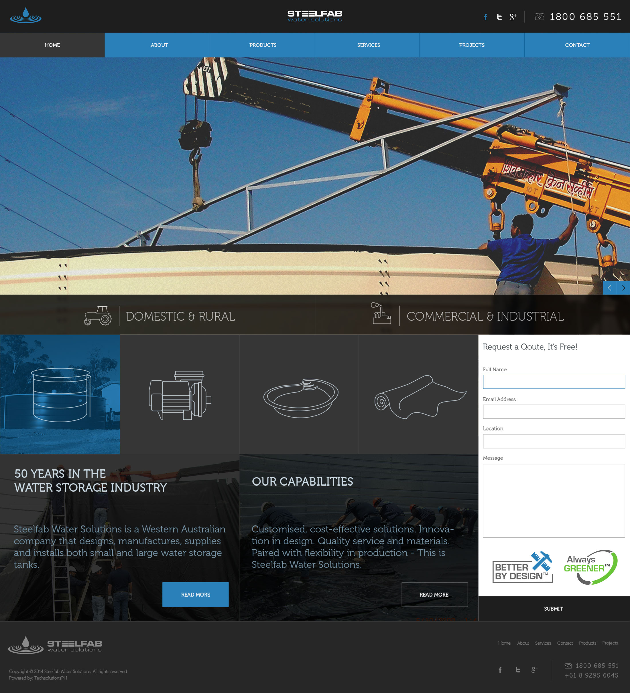 Steelfab Water Solutions is a Western Australian company that designs, manufactures, supplies, and installs both small and large water storage tanks.